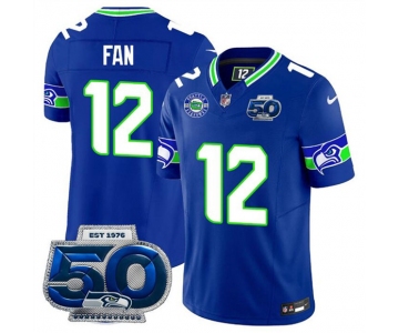 Men's Seattle Seahawks #12 Fan Royal 2025 F.U.S.E 50th Season Patch Throwback Vapor Limited Football Stitched Jersey
