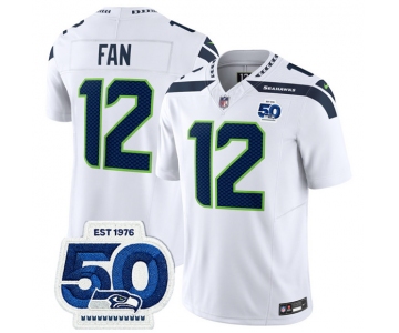 Men's Seattle Seahawks #12 Fan White 2025 F.U.S.E. 50th Anniversary Patch Vapor Limited Football Stitched Jersey