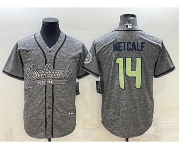 Men's Seattle Seahawks #14 DK Metcalf Grey Gridiron With Patch Cool Base Stitched Baseball Jersey