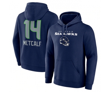 Men's Seattle Seahawks #14 DK Metcalf Navy Team Wordmark Player Name & Number Pullover Hoodie
