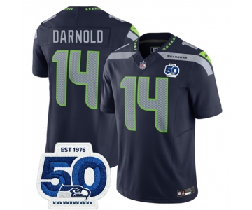 Men's Seattle Seahawks #14 Sam Darnold Navy 2025 F.U.S.E. 50th Anniversary Patch Vapor Limited Football Stitched Jersey