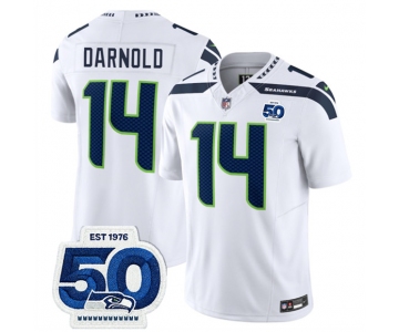 Men's Seattle Seahawks #14 Sam Darnold White 2025 F.U.S.E. 50th Anniversary Patch Vapor Limited Football Stitched Jersey