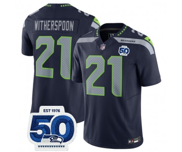 Men's Seattle Seahawks #21 Devon Witherspoon Navy 2025 F.U.S.E. 50th Anniversary Patch Vapor Limited Football Stitched Jersey
