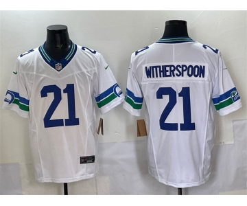 Men's Seattle Seahawks #21 Devon Witherspoon White F.U.S.E. Throwback Vapor Limited Football Stitched Jersey