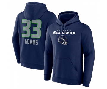 Men's Seattle Seahawks #33 Jamal Adams Navy Team Wordmark Player Name & Number Pullover Hoodie