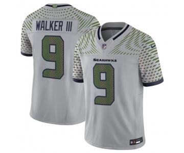Men's Seattle Seahawks #9 Kenneth Walker III Gray 2025 F.U.S.E. “Rivalries” Vapor Limited Football Stitched Jersey
