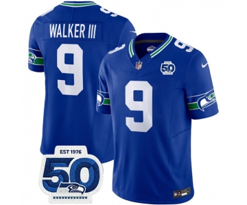 Men's Seattle Seahawks #9 Kenneth Walker III Royal 2025 F.U.S.E 50th Anniversary Patch Throwback Vapor Limited Football Stitched Jersey
