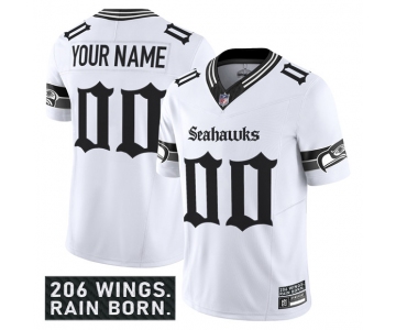 Men's Seattle Seahawks Active Player Custom White 2025 F.U.S.E. 'Gothic Rain City Shadows Edition' Vapor Limited Stitched Jersey