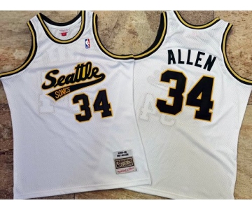 Men's Seattle Supersonics #34 Ray Allen White 2005-06 AU Throwback Jersey