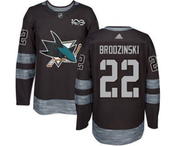 Men's Sharks #22 Jonny Brodzinski Black 1917-2017 100th Anniversary Stitched Hockey Jersey