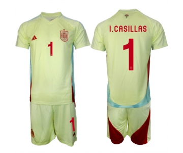 Men's Spain Team #1 Iker Casillas 2024-25 Yellow Away Soccer Jersey Suit