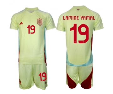 Men's Spain Team #19 Lamine Yamal 2024-25 Yellow Away Soccer Jersey Suit