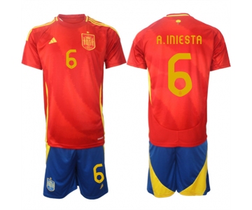Men's Spain Team #6 Andrés Iniesta 2024-25 Red Home Soccer Jersey Suit