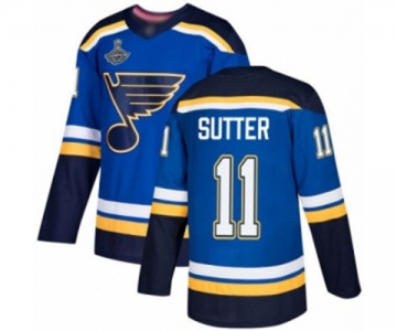 Men's St. Louis Blues #11 Brian Sutter Authentic Royal Blue Home 2019 Stanley Cup Champions Hockey Jersey