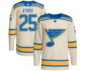Your Position: Home>NHL Jerseys> St. Louis Blues>Men>Men's St. Louis Blues #25 Jordan Kyrou Cream 2022 Winter Classic Stitched Jersey