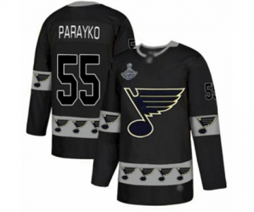 Men's St. Louis Blues #55 Colton Parayko Authentic Black Team Logo Fashion 2019 Stanley Cup Champions Hockey Jersey