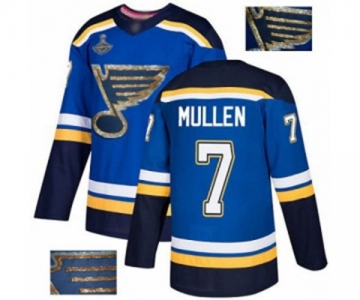 Men's St. Louis Blues #7 Joe Mullen Authentic Royal Blue Fashion Gold 2019 Stanley Cup Champions Hockey Jersey