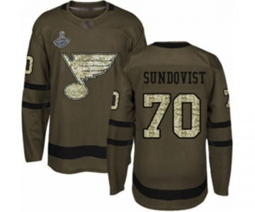 Men's St. Louis Blues #70 Oskar Sundqvist Authentic Green Salute to Service 2019 Stanley Cup Champions Hockey Jersey