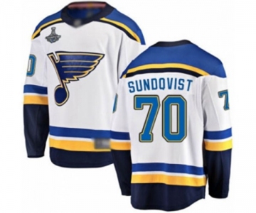Men's St. Louis Blues #70 Oskar Sundqvist Fanatics Branded White Away Breakaway 2019 Stanley Cup Champions Hockey Jersey