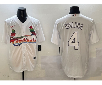 Men's St. Louis Cardinals #4 Yadier Molina White Cool Base Stitched Baseball Jersey