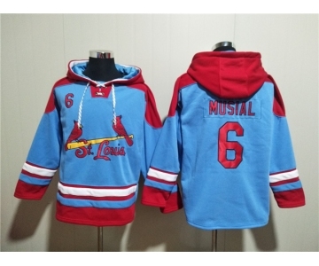 Men's St.Louis Cardinals #6 Stan Musial Blue Ageless Must-Have Lace-Up Pullover Hoodie