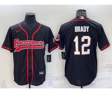 Men's Tampa Bay Buccaneers #12 Tom Brady Black Cool Base Stitched Baseball Jersey