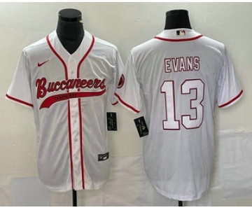 Men's Tampa Bay Buccaneers #13 Mike Evans White With Patch Cool Base Stitched Baseball Jersey