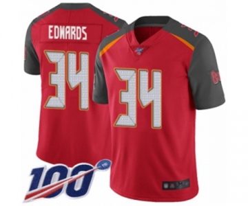 Men's Tampa Bay Buccaneers #34 Mike Edwards Red Team Color Vapor Untouchable Limited Player 100th Season Football Jersey