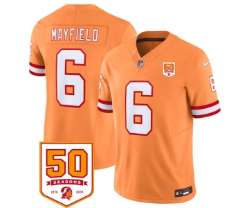 Men's Tampa Bay Buccaneers #6 Baker Mayfield Orange 2025 F.U.S.E. 50th Anniversary Patch Vapor Untouchable Limited Football Stitched Jersey