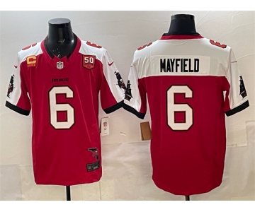 Men's Tampa Bay Buccaneers #6 Baker Mayfield Red Alternate F.U.S.E. 50th Season & 4-Star C Patch Vapor Limited Football Stitched Jersey