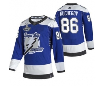 Men's Tampa Bay Lightning #86 Nikita Kucherov 2021 Blue Stanley Cup Champions Reverse Retro Stitched Hockey Jersey