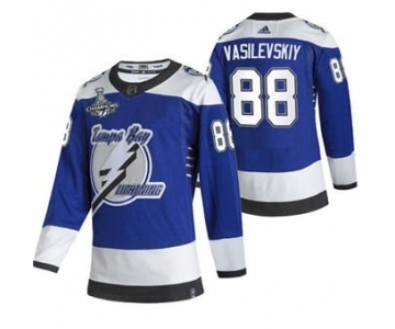 Men's Tampa Bay Lightning #88 Andrei Vasilevskiy 2021 Blue Stanley Cup Champions Reverse Retro Stitched Hockey Jersey