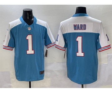 Men's Tennessee Titans #1 Cameron Ward Blue White 2025 Draft F.U.S.E. Vapor Limited Football Stitched Jersey