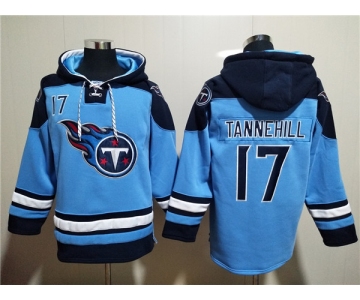 Men's Tennessee Titans #17 Ryan Tannehill Blue Lace-Up Pullover Hoodie