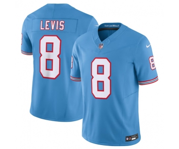Your Position: Home>NIKE NFL Jerseys>Nike Tennessee Titans>Limited jersey>Men's Tennessee Titans #8 Will Levis Light Blue 2023 F.U.S.E. Vapor Limited Throwback Stitched Jersey