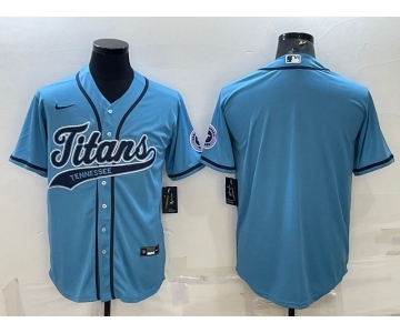 Men's Tennessee Titans Blank Blue With Patch Cool Base Stitched Baseball Jersey
