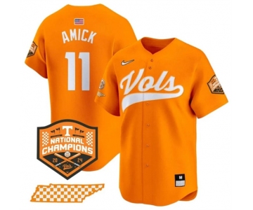 Men's Tennessee Volunteers #11 Billy Amick Orange 2024 Champions Vapor Limited Stitched Jersey