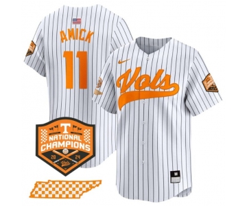 Men's Tennessee Volunteers #11 Billy Amick White Pinstripe 2024 Champions Vapor Limited Stitched Jersey
