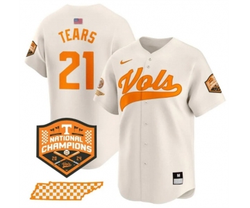 Men's Tennessee Volunteers #21 Kavares Tears Cream 2024 Champions Vapor Limited Stitched Jersey