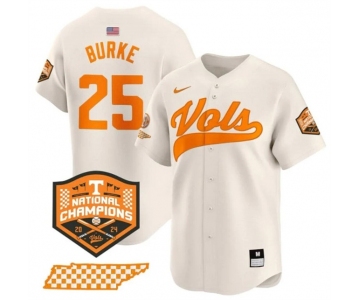 Men's Tennessee Volunteers #25 Blake Burke Cream 2024 Champions Vapor Limited Stitched Jersey