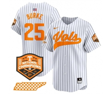 Men's Tennessee Volunteers #25 Blake Burke White Pinstripe 2024 Champions Vapor Limited Stitched Jersey