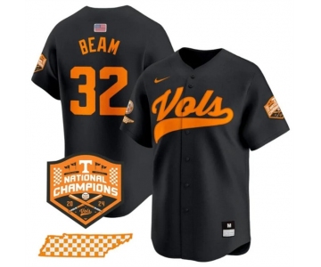 Men's Tennessee Volunteers #32 Drew Beam Black 2024 Champions Vapor Limited Stitched Jersey