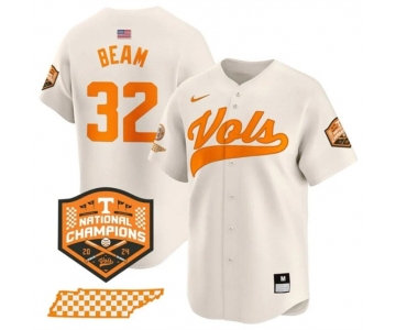 Men's Tennessee Volunteers #32 Drew Beam Cream 2024 Champions Vapor Limited Stitched Jersey