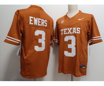 Men's Texas Longhorns #3 Quinn Ewers Orange FUSE College Stitched Jersey