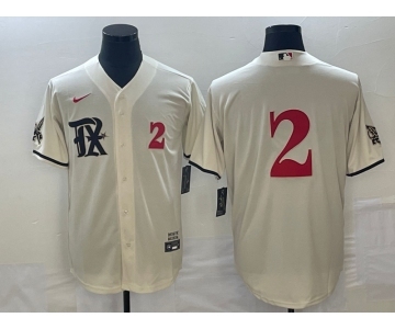 Men's Texas Rangers #2 Marcus Semien Number Cream 2023 City Connect Stitched Baseball Jerseys