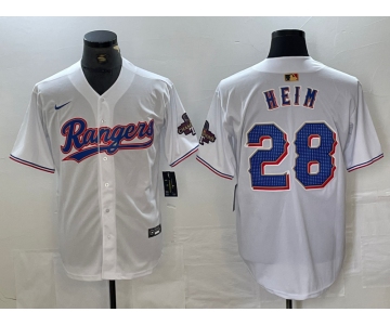Men's Texas Rangers #28 Jonah Heim White 2023 World Series Champions Cool Base Jersey