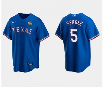 Your Position: Home>NIKE MLB Jerseys>Texas Rangers>Men>Men's Texas Rangers #5 Corey Seager Royal 2023 World Series Stitched Baseball Jersey