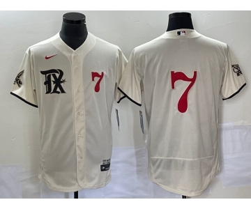 Men's Texas Rangers #7 Ivan Rodriguez Number Cream 2023 City Connect Flex Base Stitched Baseball Jersey