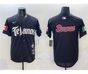 Men's Texas Rangers Team Big Logo Black Mexico 2025 Vapor Premier Limited Stitched Baseball Jersey