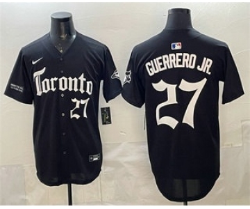 Men's Toronto Blue Jays #27 Vladimir Guerrero Jr Black Gothic North Edition Limited Stitched Baseball Jersey
